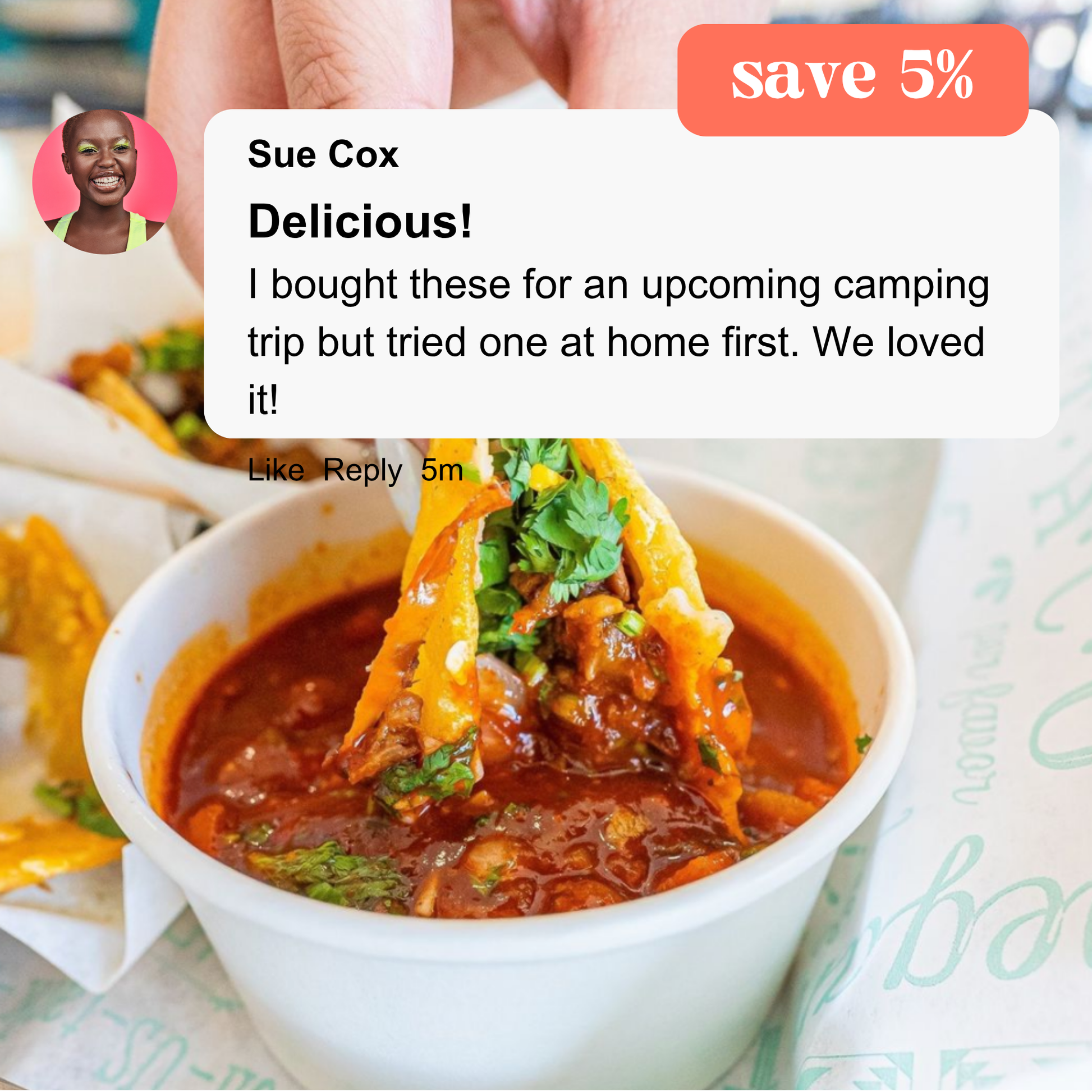 We do one thing—TACOS. Not only is our whole website devoted to the art of the taco, but we’ve got six restaurants filled with lifelong fans. We created these take-home pouches so you can get our legit restaurant flavor any night, right in your kitchen. No prep, no fuss—just pure taco bliss. Don’t worry, you don’t have to tell anyone you’re cheating at dinner… it’ll be our little secret.