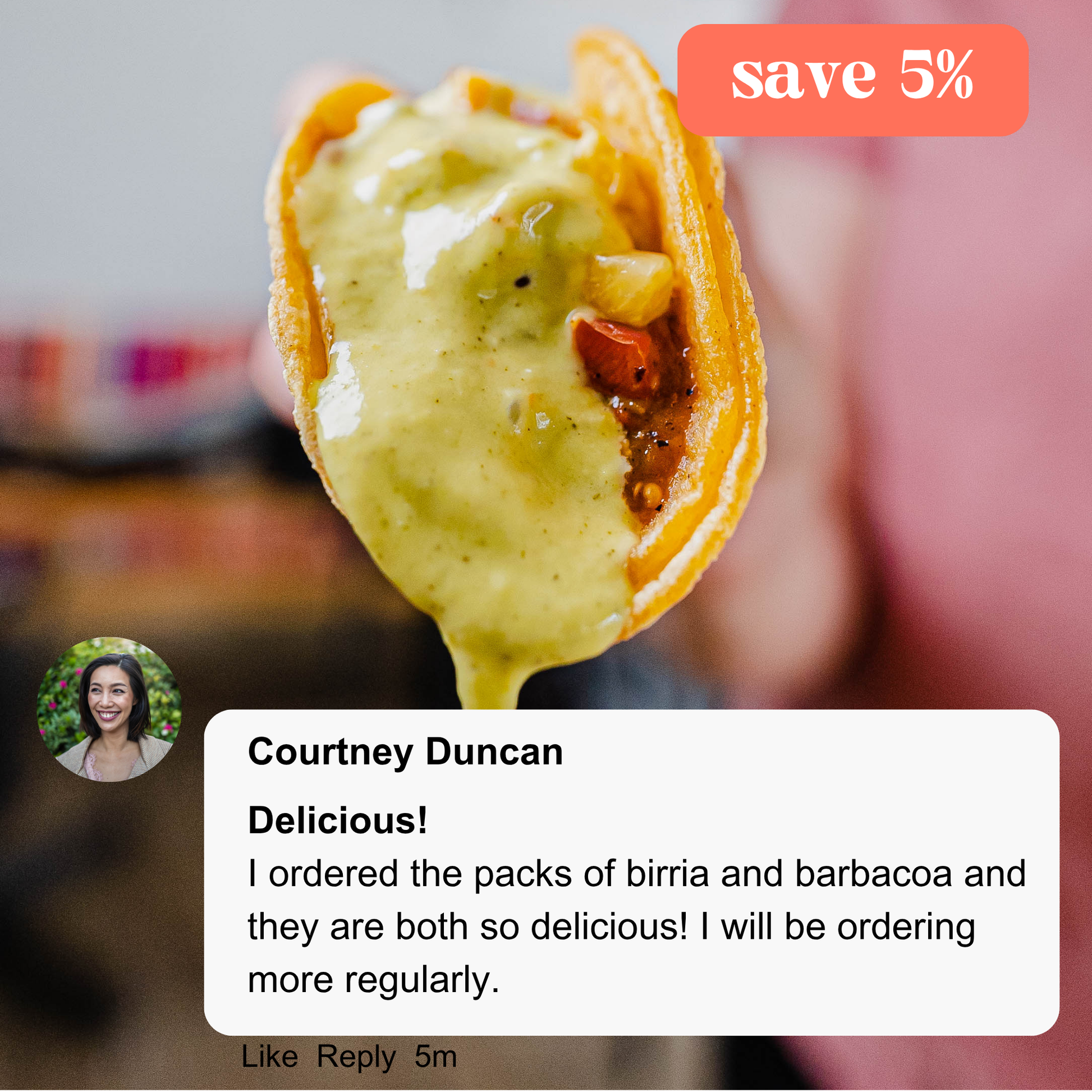 Our taco fillings aren’t just inspired by restaurant recipes—they are our restaurant recipes. Developed by the same team that’s been wowing customers at Tacotarian since 2018